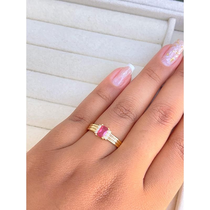 Anel aro largo com zircônia quadrada cereja banhado em ouro 18k
