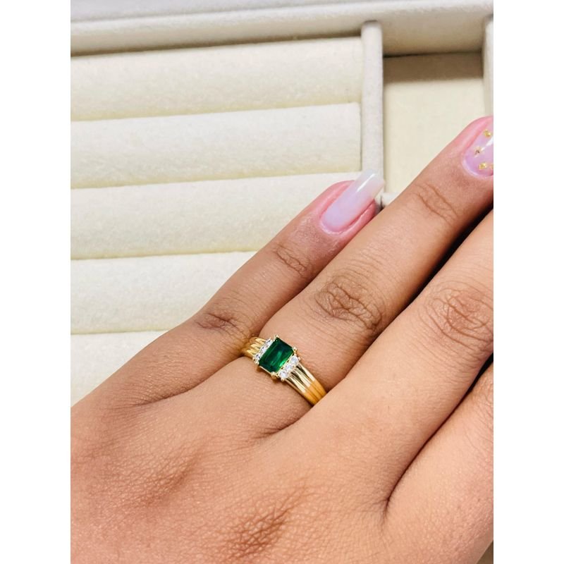 Anel aro largo com zircônia quadrada verde banhado em ouro 18k