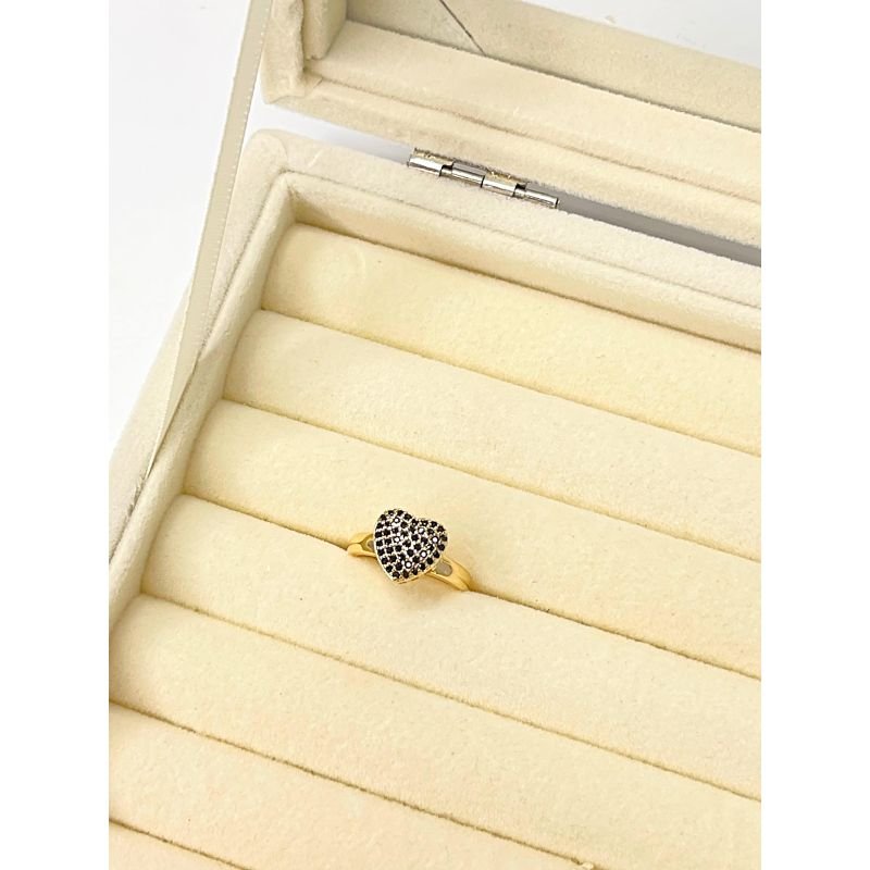 Anel chuveirinho coração de zircônia negra banhado em ouro 18k