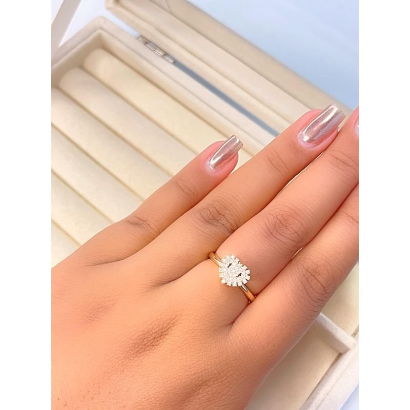 Anel chuveirinho em coração cravejado banhado em ouro 18k