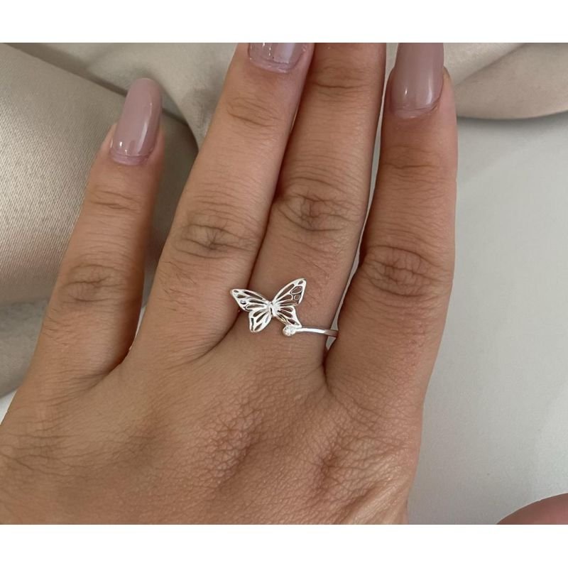 Anel com borboleta e ponto de luz em prata 925