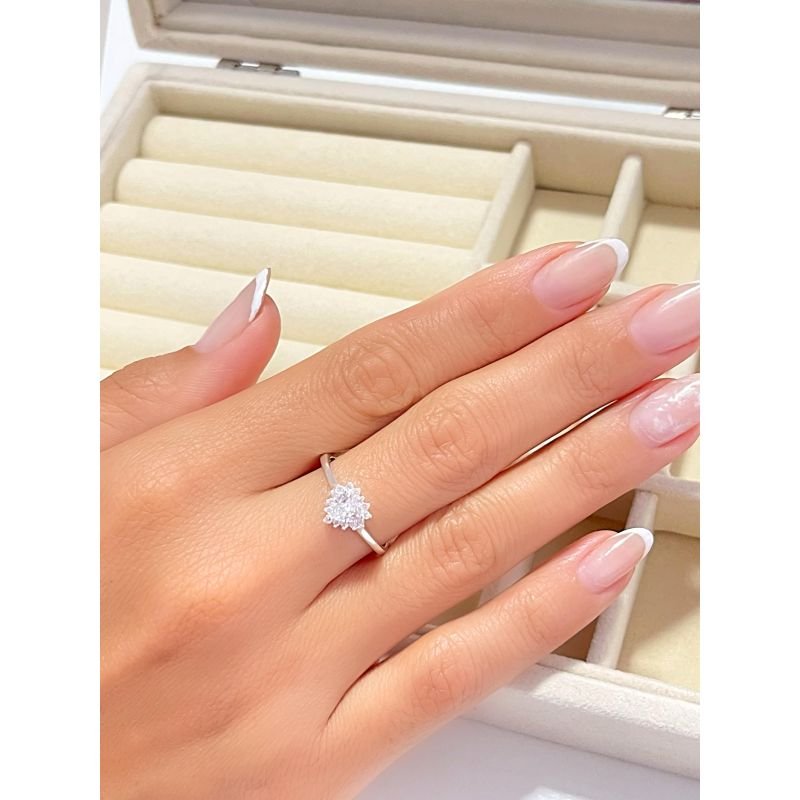 Anel com coração cravejado em prata 925