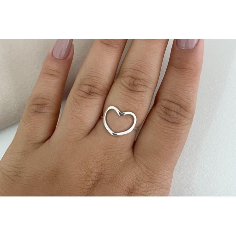 Anel com coração vazado em prata 925