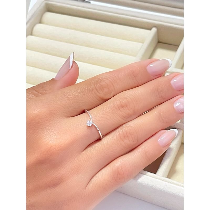 Anel com design "v" com cristal em prata 925