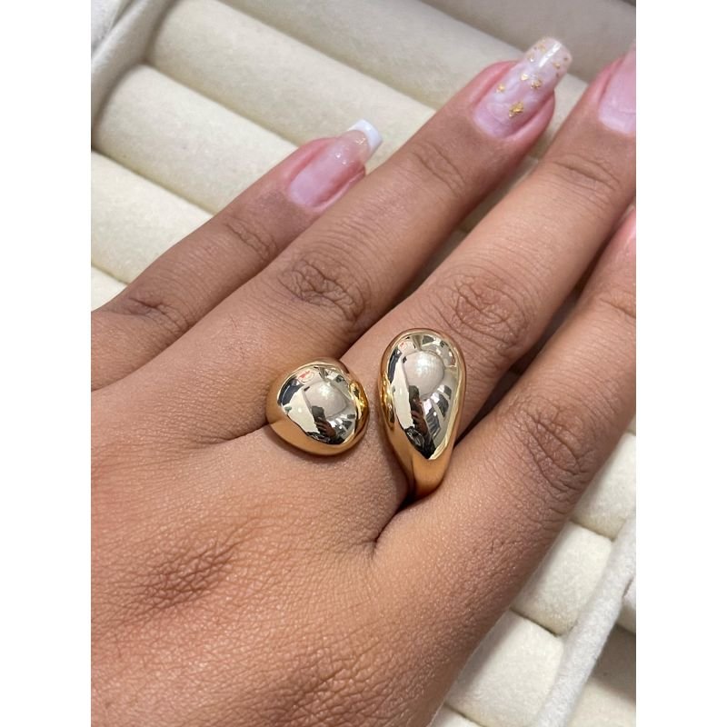 Anel com duas gotas preenchidas banhado em ouro 18k