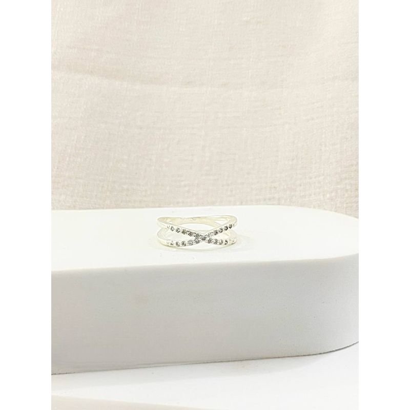 Anel em formato "x" cravejado em prata 925