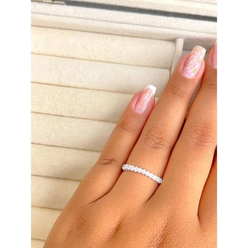 Anel meia aliança com zircônias cravejada em prata 925