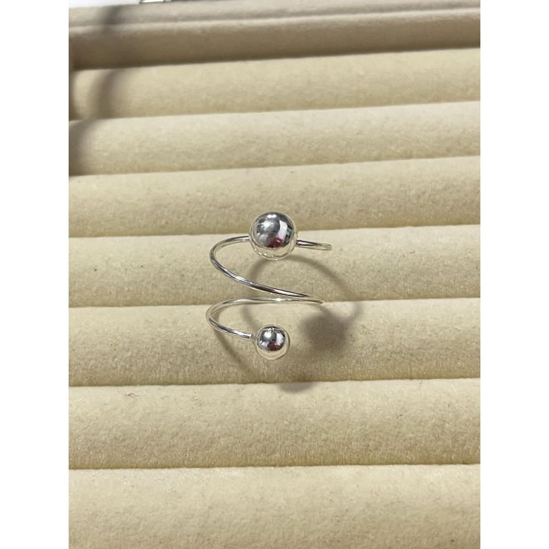 Anel regulável com duas esferas lisa em prata 925