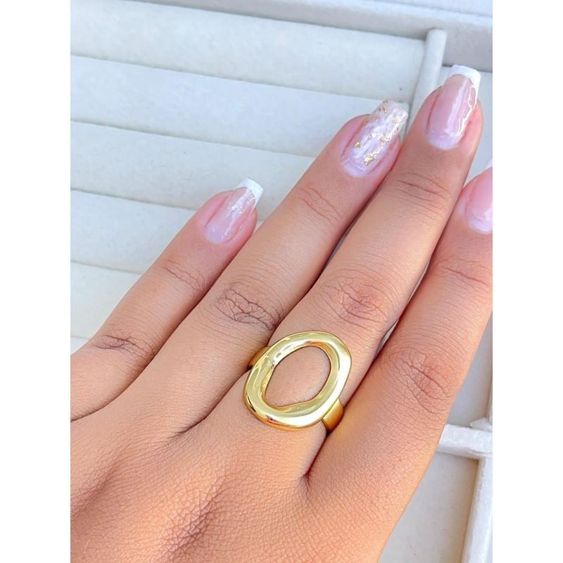 Anel regulável orgânico banhado a ouro 18k