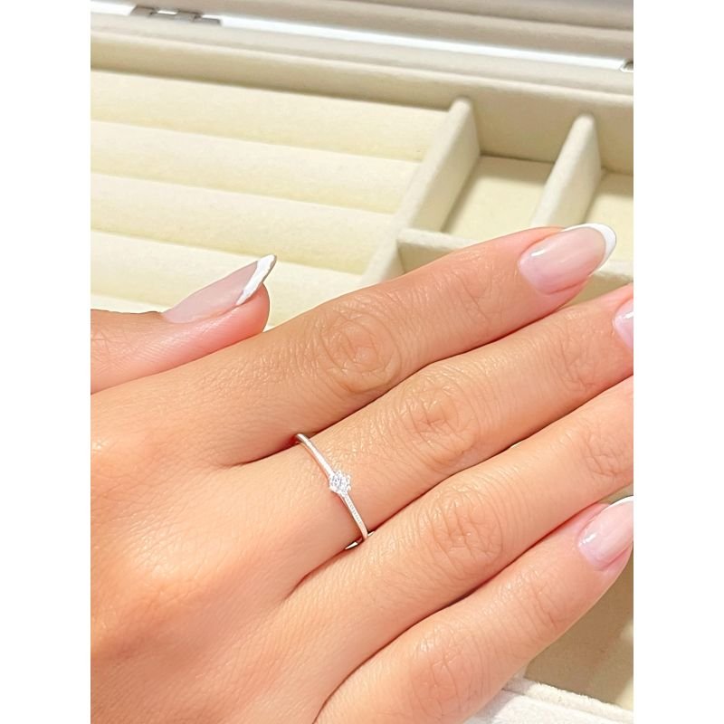 Anel solitário fino com risco em prata 925