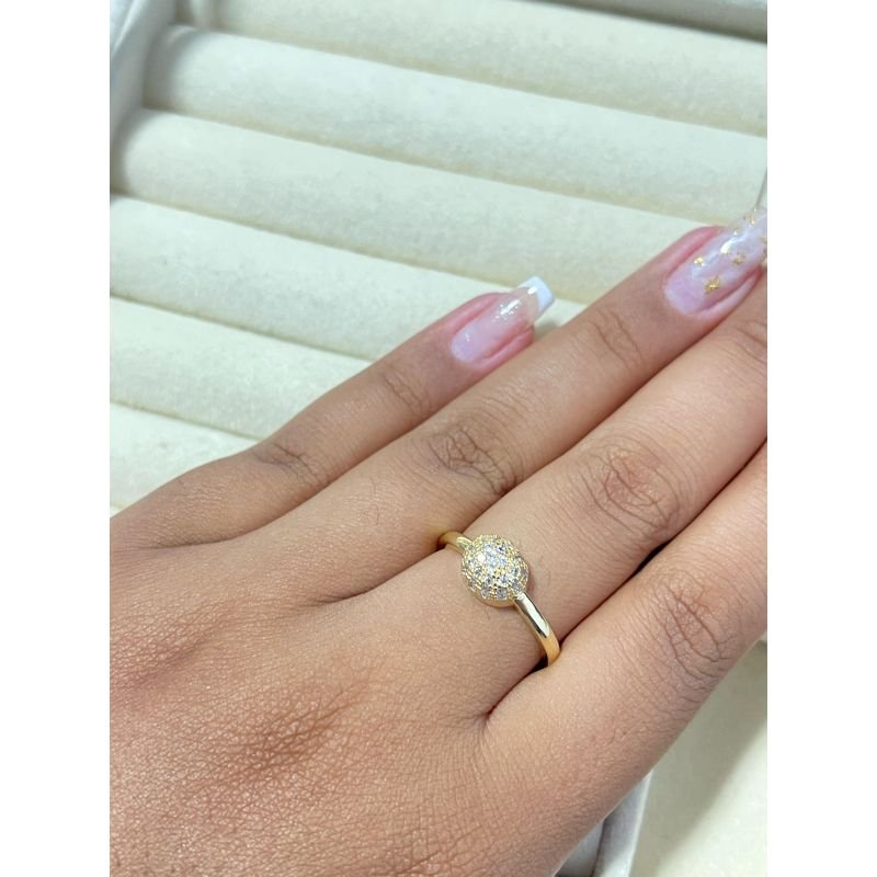 Anel topo redondo preenchido de zircônias cristais banhado em ouro 18k