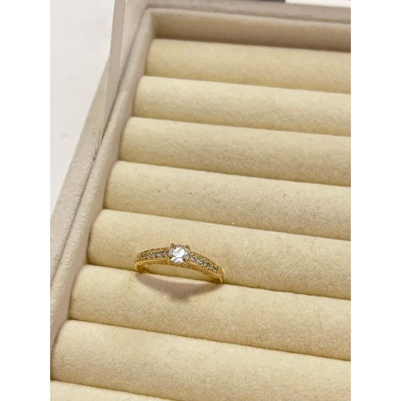 Anel topo trabalhado cravejado e com zircônia cristal banhado em ouro 18k