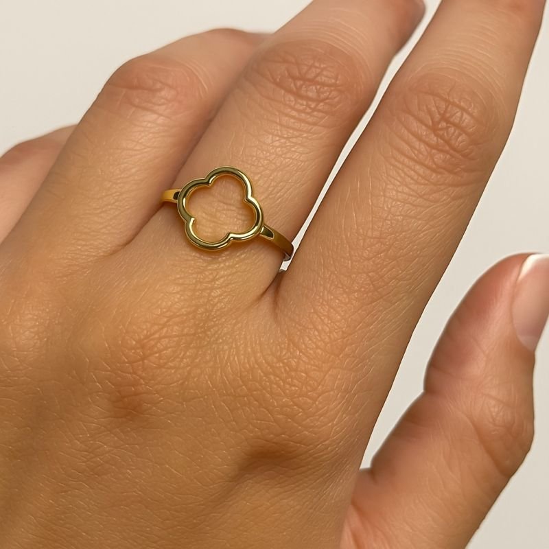 Anel trevo vazado banhado em ouro 18k