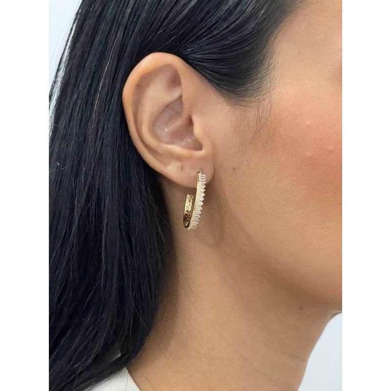 Argola aberta cravejada com zircônia formato oval banhado a ouro 18k