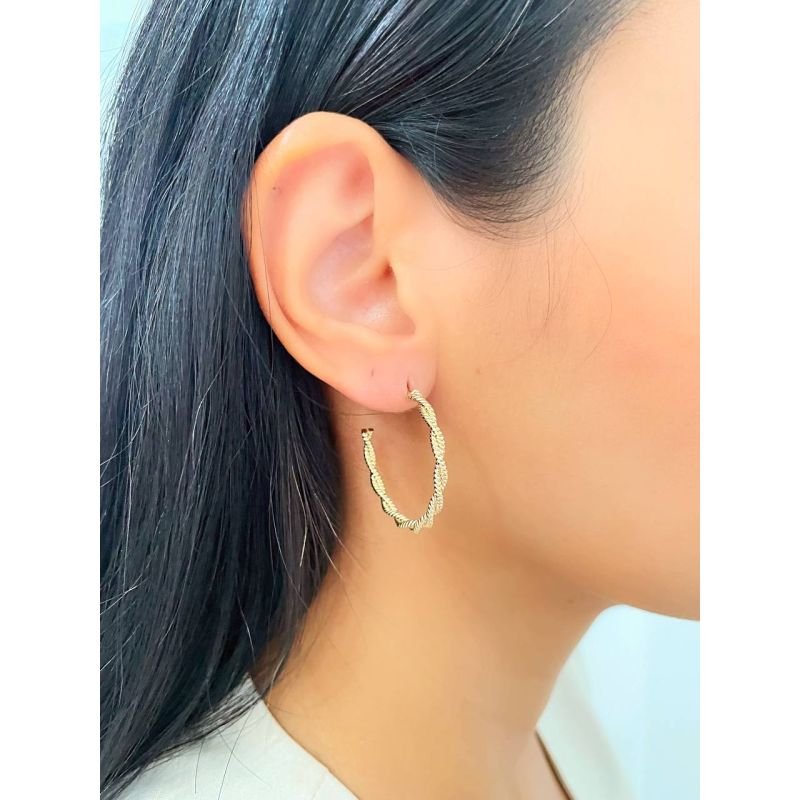 Argola aberta entrelançada e craquelada banhado a ouro 18k