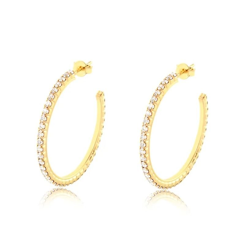 Argola aberta média cravejada de zircônias cristais banhada em ouro 18k