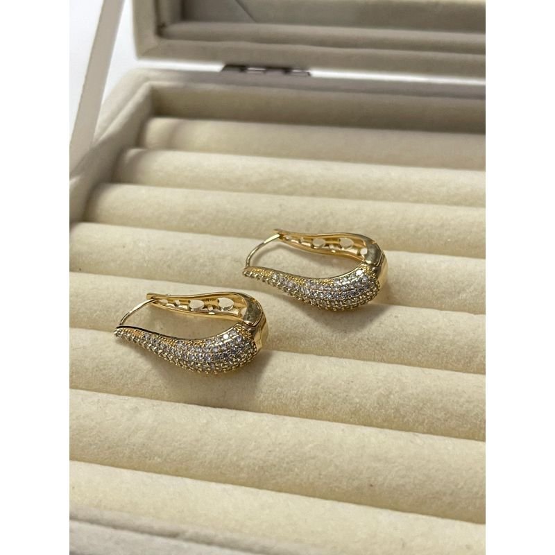 Argola aro design de gota cravejada fundo com detalhes banhado em ouro 18k