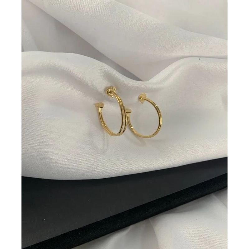 Argola fio fino duplo e coração na ponta banhada em ouro 18k