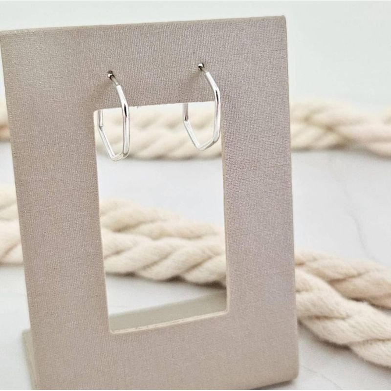 Argola hexagonal P em prata 925