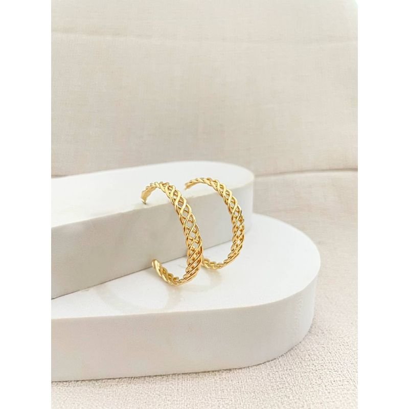 Argola média larga com fios entrelaçados banhada em ouro 18k