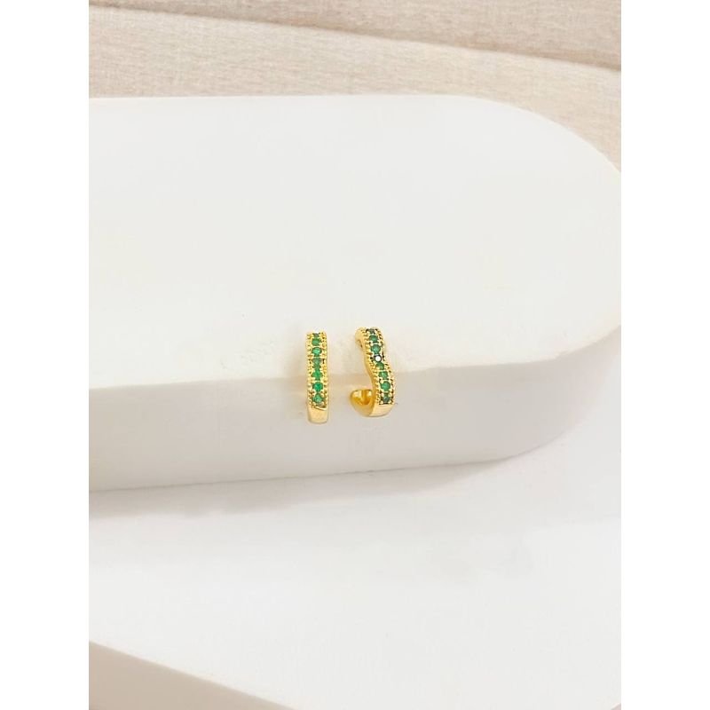 Argola pequena formato coração com pedras verde banhado a ouro 18k
