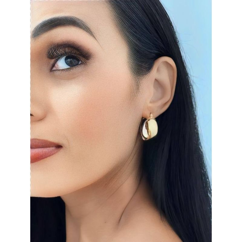Argola pequena oval com tubo largo banhada em ouro 18k