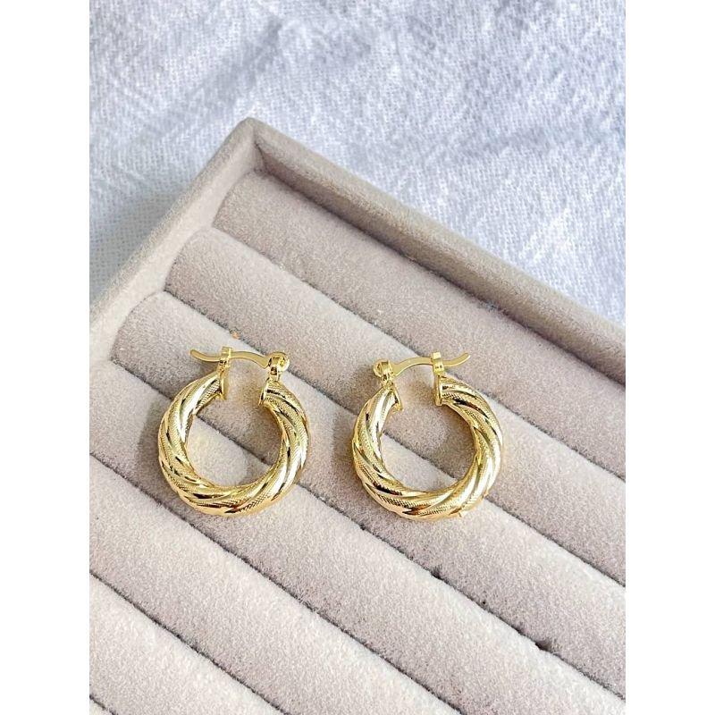 Argolinha fechada com tubo torcido liso e texturizado banhada em ouro 18k