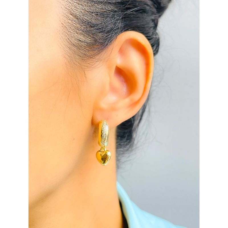 Argolinha texturizada com pingente coração preenchido banhado em ouro 18k