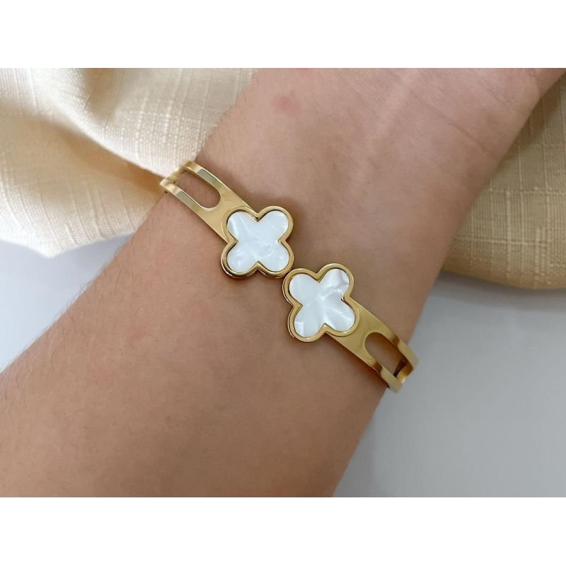 Bracelete de clique com trevo branco banhado em ouro 18k