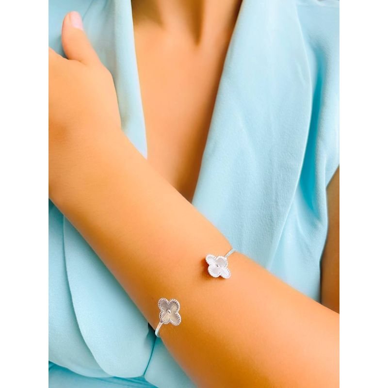 Bracelete regulável com trevo listrado banhado em ródio branco