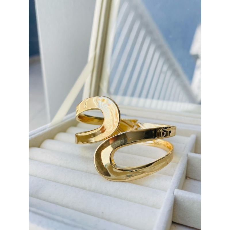 Brcaelete largo aro vazado banhado em ouro 18k
