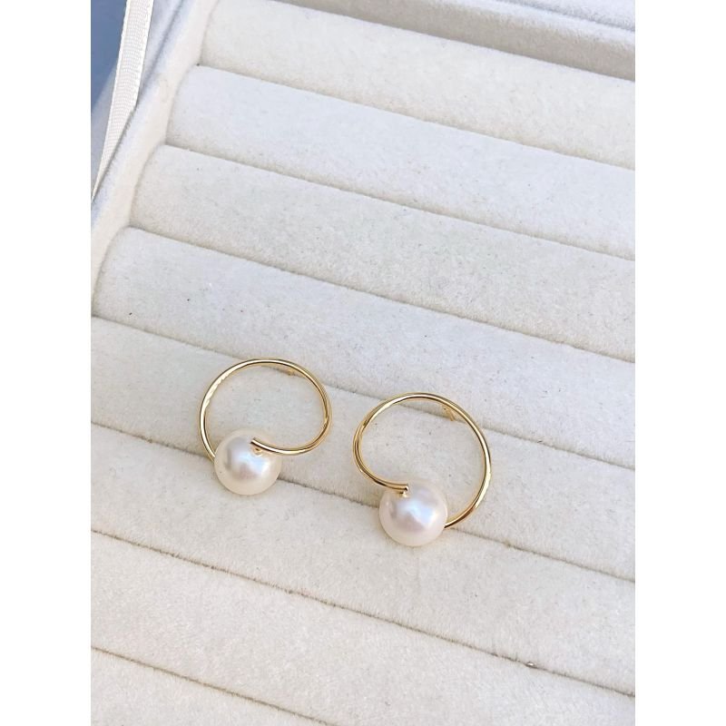 Brinco círculo com pérola banhado em ouro 18k