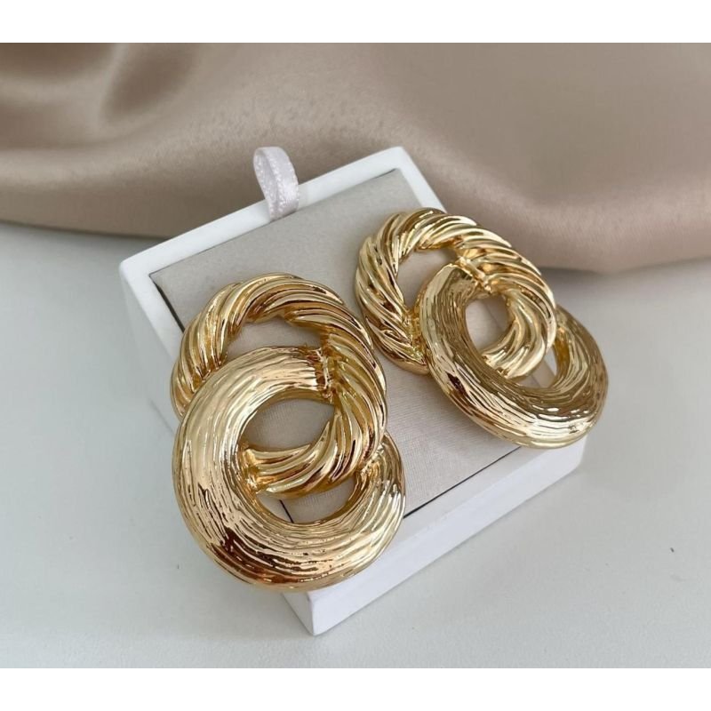 Brinco círculo texturizado entrelaçado banhado em ouro 18k