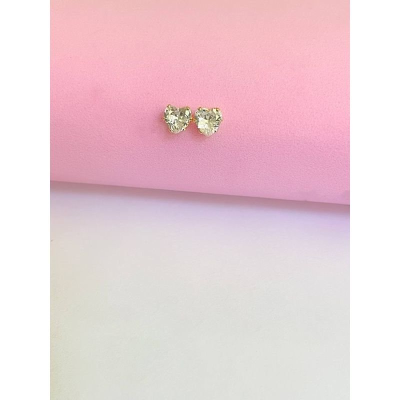 Brinco coração com pedra cristal média banhado em ouro 18k