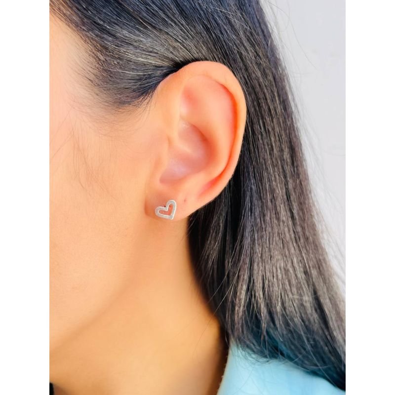 Brinco coração vazado em prata 925