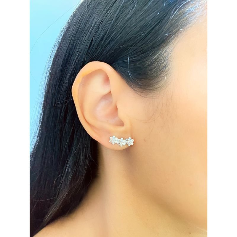 Brinco ear cuff com estrelinhas banhado em ródio branco