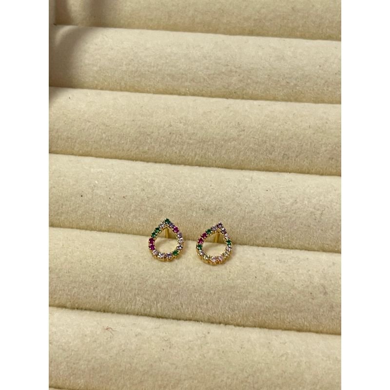 Brinco gotinha cravejado de zircônias coloridas banhado em ouro 18k