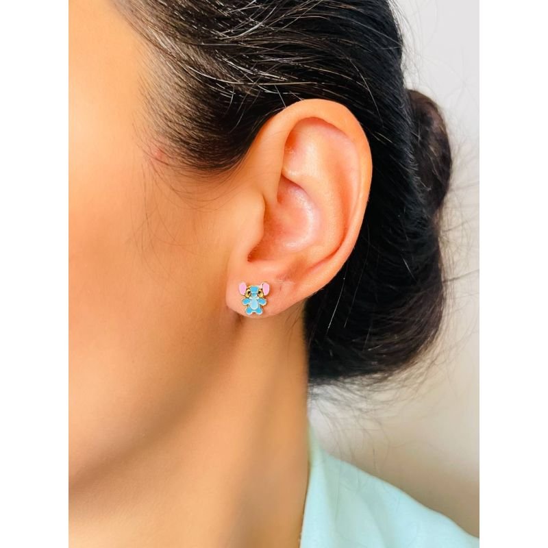 Brinco infantil stitch banhado em ouro 18k