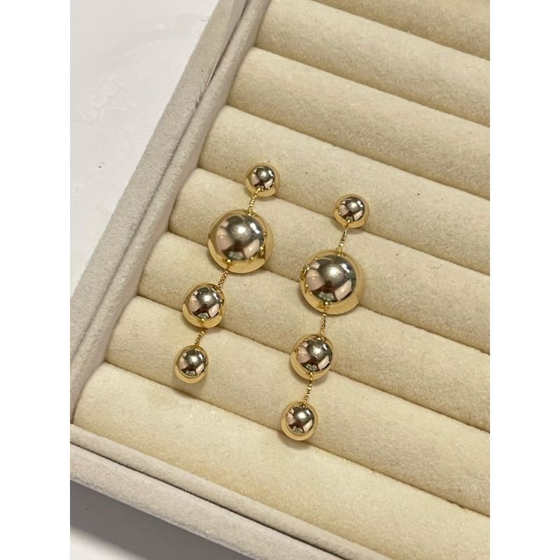 Brinco pêndulo com meia bolas banhado em ouro 18k