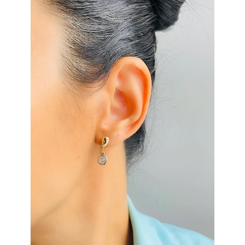 Brinco pêndulo com zircônia cristal banhado em ouro 18k