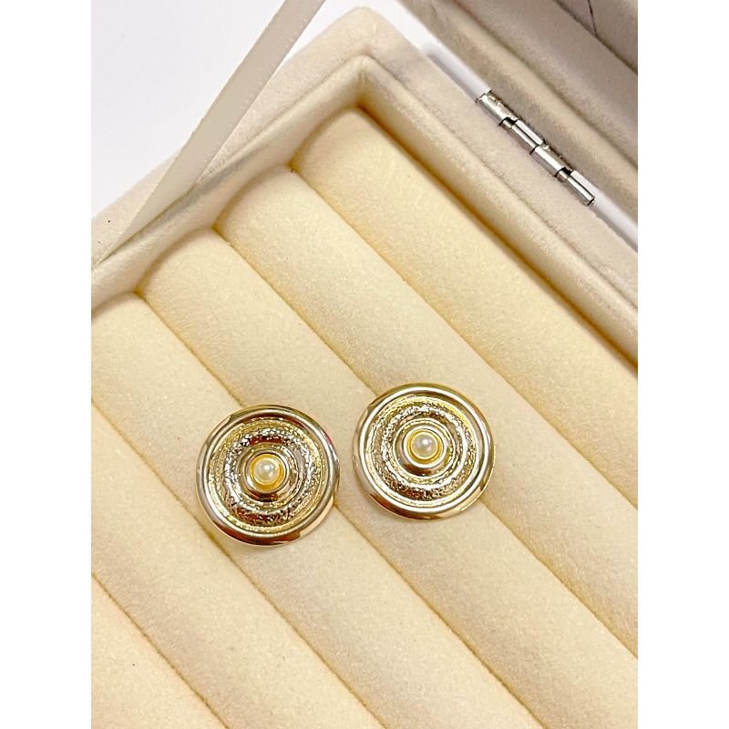 Brinco redondo liso e texturizado com pérola centralizada banhado em ouro 18k