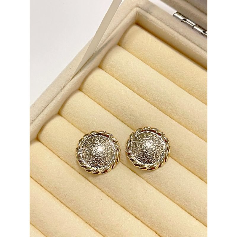 Brinco redondo texturizado com bordas torcida banhado em ouro 18k