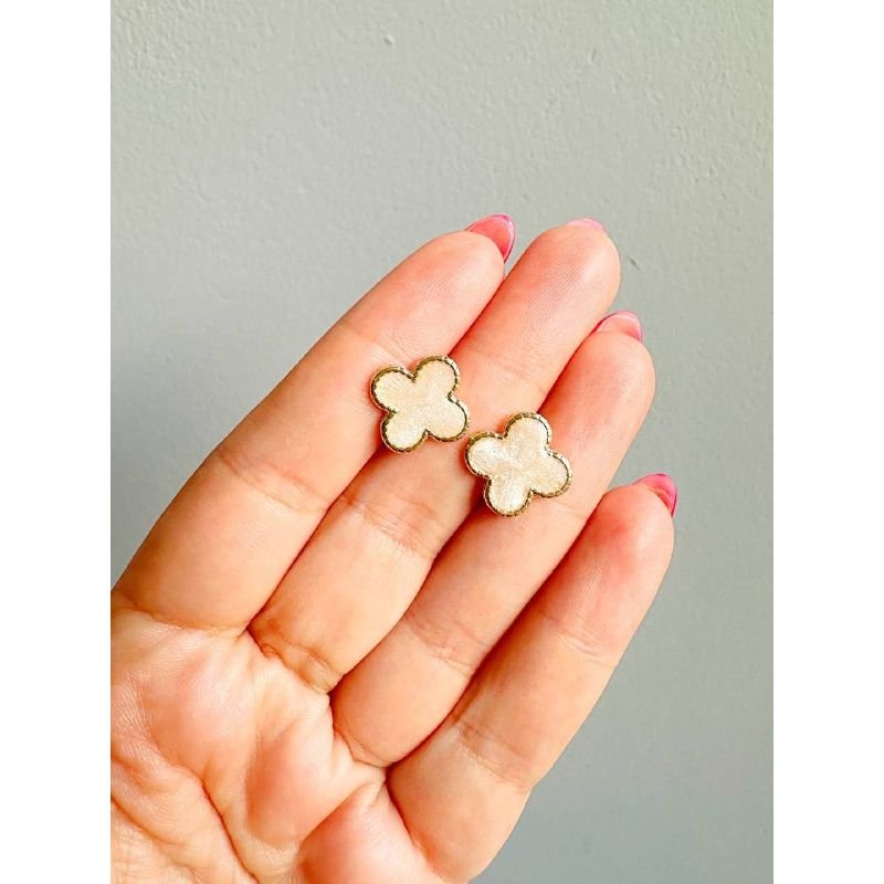 Brinco trevo na cor nude banhado em ouro 18k