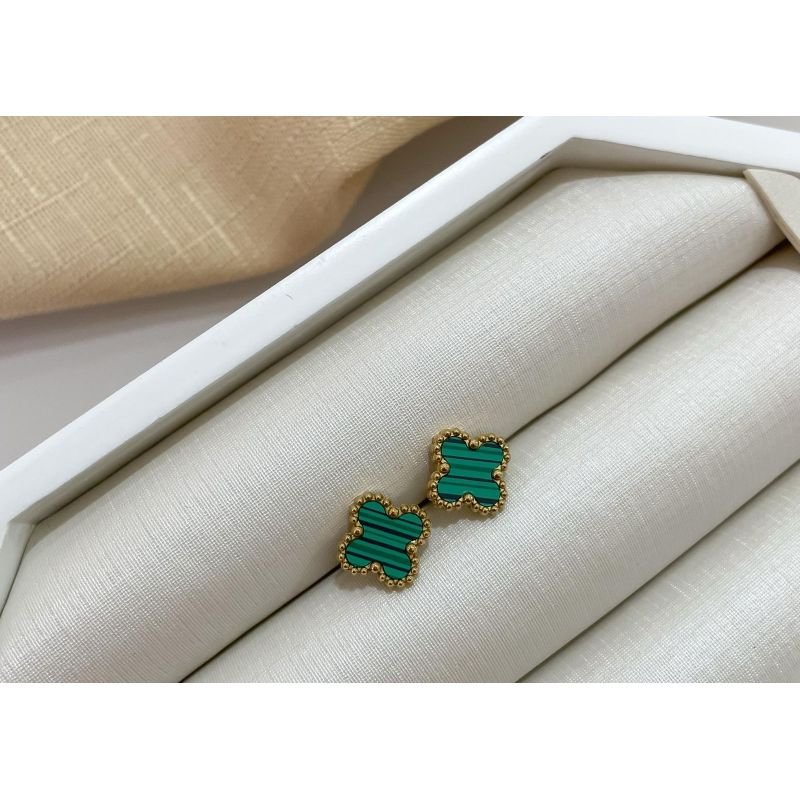 Brinco trevo verde listrado banhado em ouro 18k