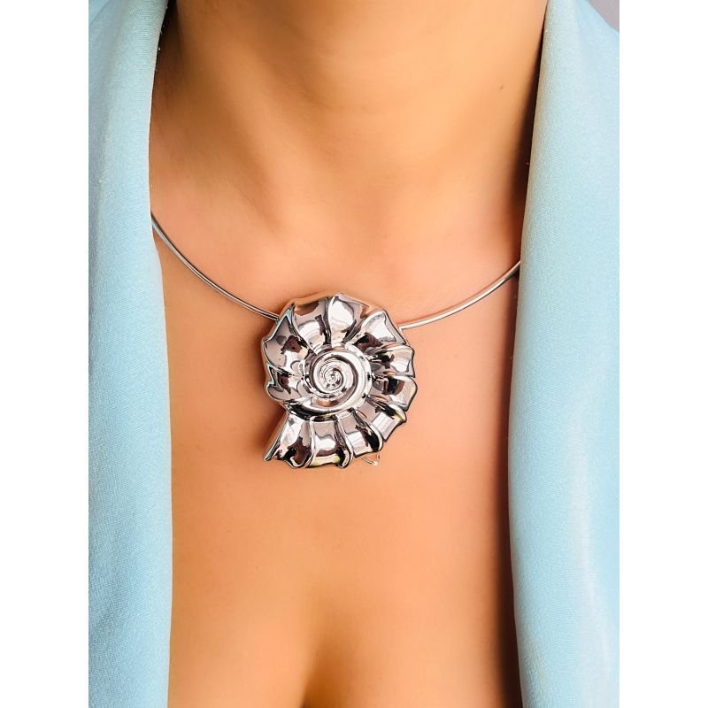 | Choker aro com caracol banhado em prata | Aro: 14 x14 cm. Extensor: 10 cm. Pingente: 5 cm |