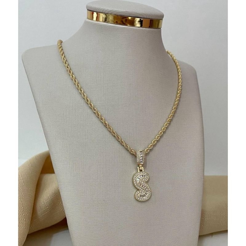 Colar cordão baiano com inicial cravejada banhado em ouro 18k