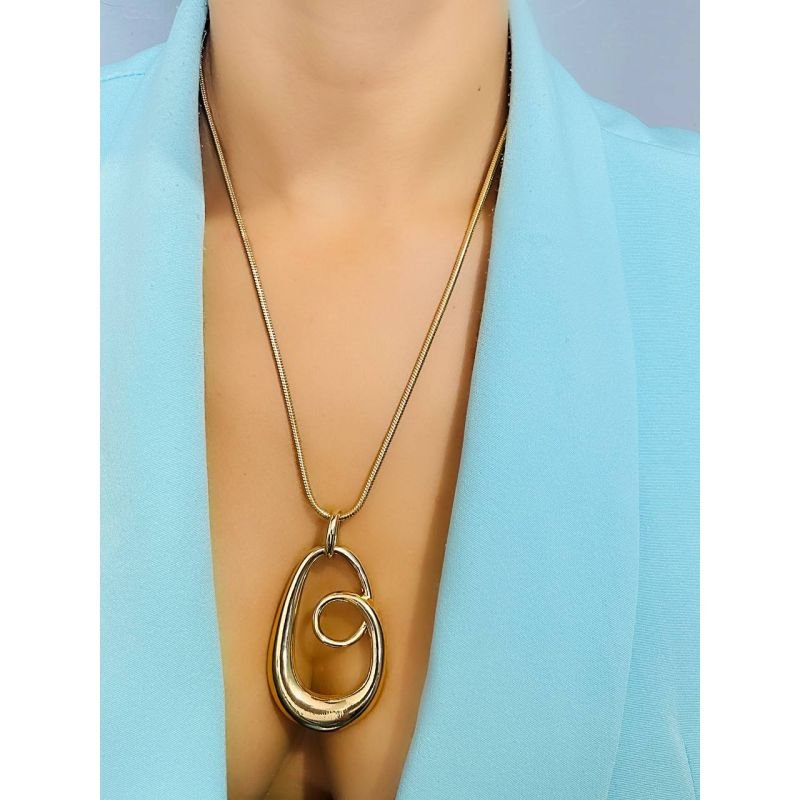Colar longo com pingente orgânico oval banhado em ouro 18k