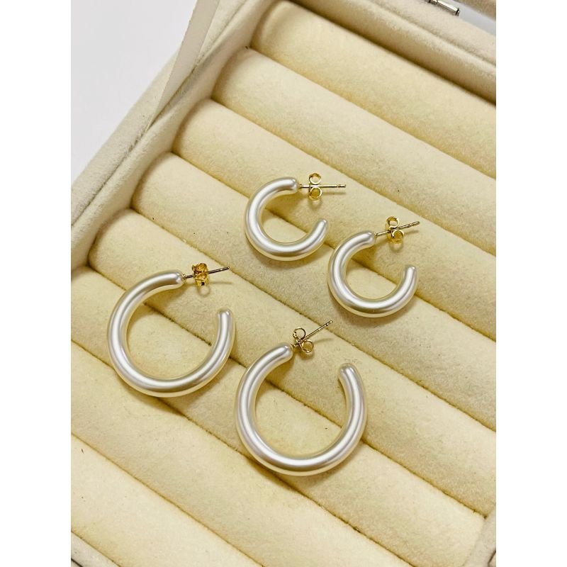 Duo de argola aro em pérola banhada em ouro 18k