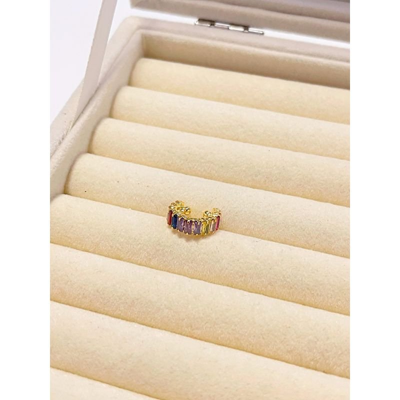 Piercign fake com zircônias retangulares coloridas banhado em ouro 18k
