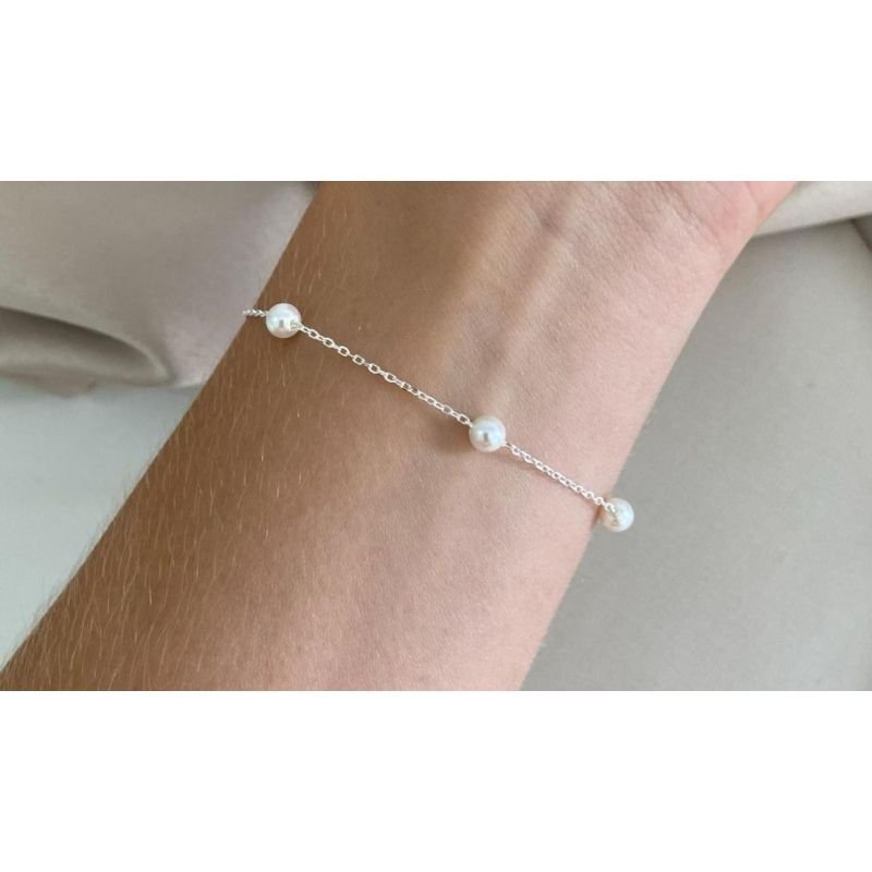 Pulseira de elo e cinco pérolas em prata 925